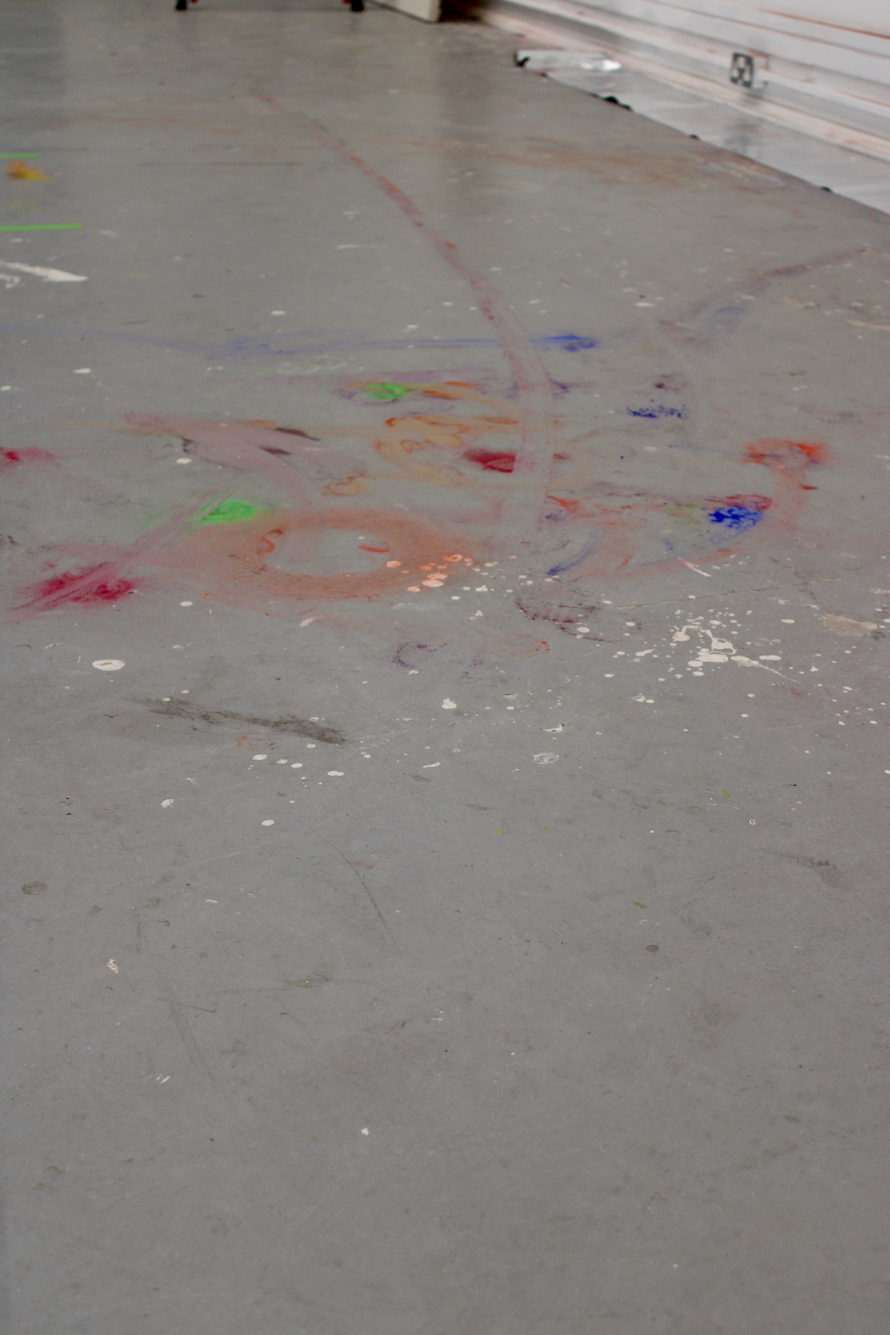 playing with space and deinstalling as exhibition making / chiffon, pastel, tinfoil, thread, card / March 2024